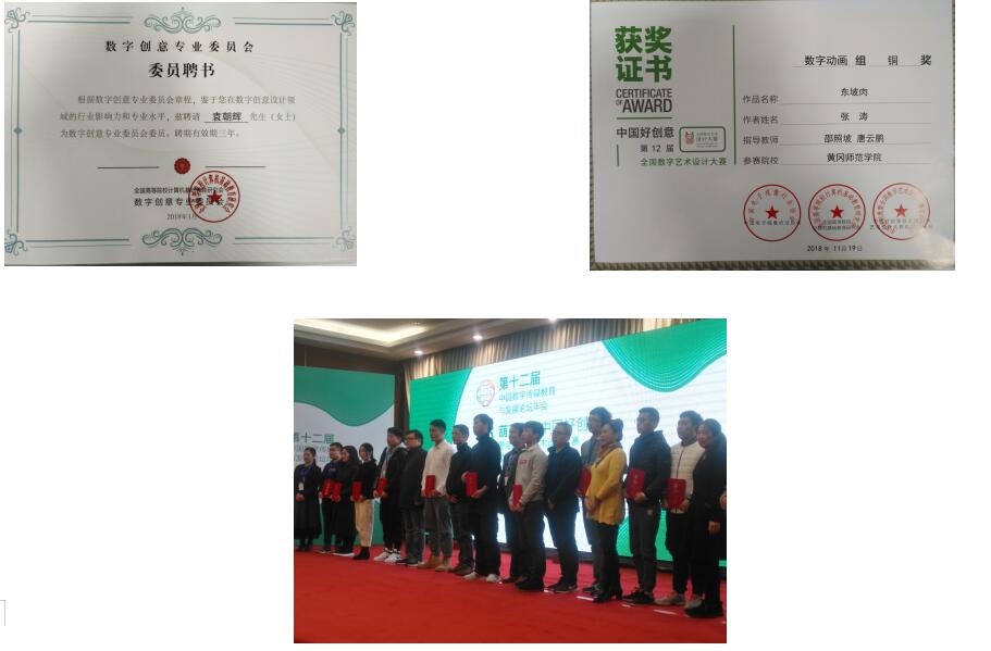 第十二届中国数字传媒教育与发展论坛年会上,鉴于在数字创意设计领域的行业影响力和专业水平,公海贵宾会员检测中心袁朝辉副教授、邵照坡副教授被聘为全国高等院校计算机基础教育研究会数字创意专业委员会委员,并分别获得学术奖。