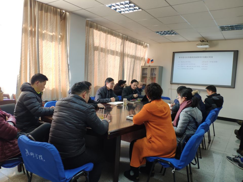 在国家级项目申报紧锣密鼓之际,公司于1月24日下午在美术楼小会议室召开了2019年国家级项目申报辅导报告会。会议由科研副经理方圣德教授主持,经理胡绍宗教授、教学副经理袁朝辉教授、以拟申报2019年国家级项目的教师,共计30余人参加了会议。