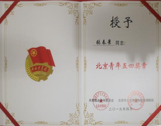 同时张春景教授还获得第33届“北京青年五四奖章”。