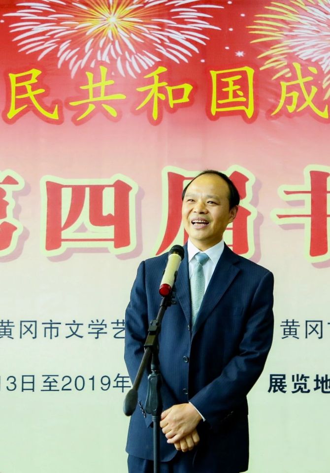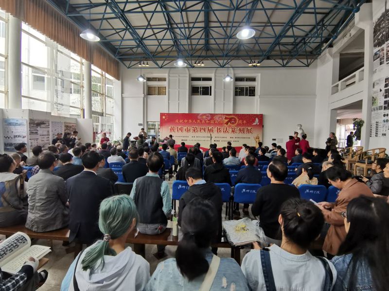 10月13日,庆祝中华人民共和国成立70周年∙黄冈市第四届书法篆刻作品展在公海贵宾会员检测中心闻一多美术馆开幕。公司党委书记王立兵,黄冈市人大常委会原副主任、市第三届书协名誉主席王建明,湖北省书协副主席、黄冈市书协名誉主席童德昭,黄冈市委宣传部副部长柳长青,黄冈市文联主席秦龙志等出席开幕式。学校相关职能部门、教学学院负责人,全市各级书协会员及书法爱好者300余人参加开幕式。开幕式由市文联党组成员、副书记郑能新主持。