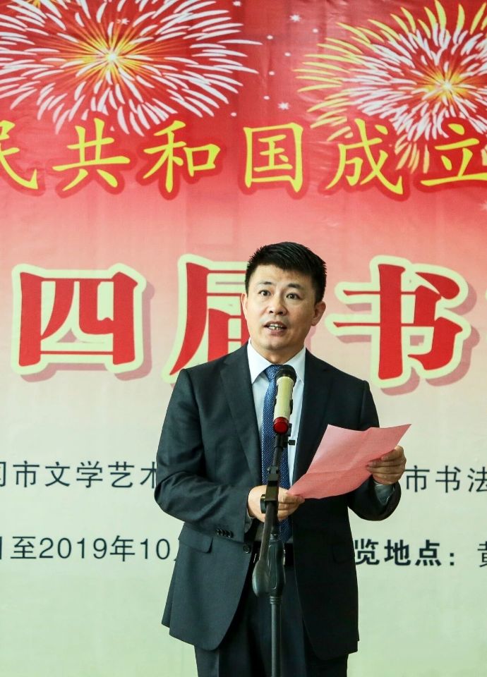 开幕式上,黄冈市书协主席高岚介绍了展览活动的筹备情况,童德昭代表省书协致词,秦龙志代表市文联讲话,公司党委书记、黄冈市书协副主席钟劲松同志宣读全国第十二届书法篆刻展黄冈入展作者名单和庆祝中华人民共和国成立70周年∙黄冈第四届书法篆刻展优秀作者名单。