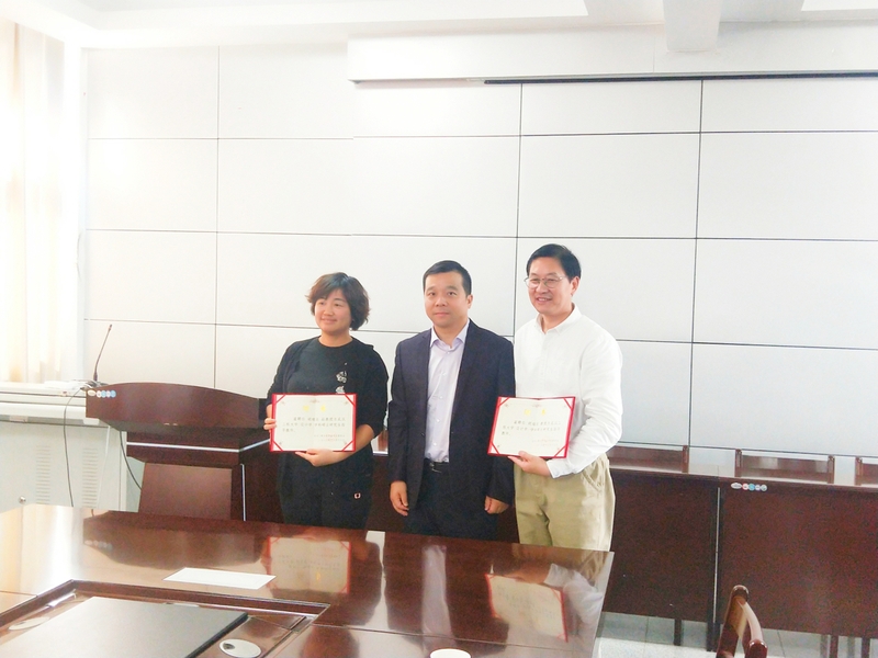 胡绍宗代表学院介绍了公司在学科和研究生工作具体措施与成绩,并对学院与武汉工程大学艺术设计学院联合培养研究生充满了信心。邱教授充分肯定了公司在学科、科研和研究生工作上的成绩,特别是在大别山农耕文化的保护与传承上尤为突出,他代表武汉工程大学艺术设计学院为胡绍宗教授和胡晓洁副教授颁发了硕士生导师的聘任证书,他们分别指导2019级三名和两名硕士研究生。