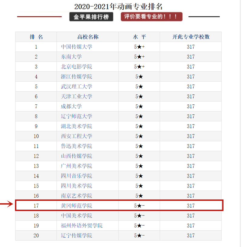 日前,知名大学排行榜“中评榜”发布了《中国大学及学科专业评价报告(2020-2021)》专业竞争力排行榜。公海贵宾会员检测中心动画专业位列参评的317所高校中的第17名,办学水平为“5★-”,湖北省高校第3位。比去年全国29名(4★)有显著提升。