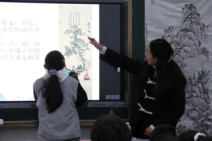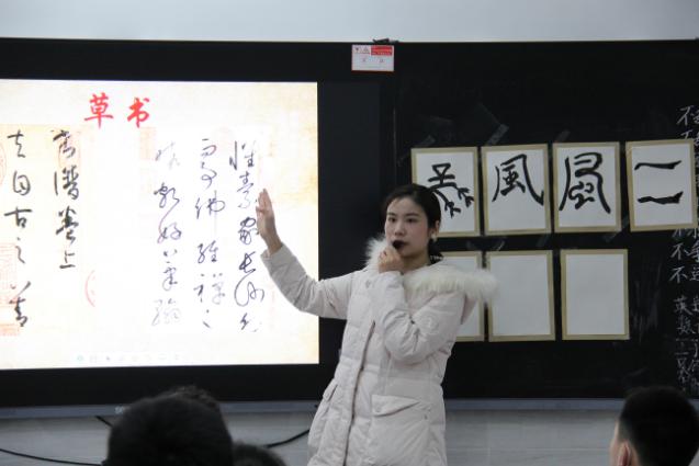 上午第三节课,在明珠学校万丽君老师的陪同下,大家在七(5)班观摩了实习生王雅岚的的公开课《书法之美》。这是一节美术鉴赏类课程,王雅岚从象形文字导入,沿着金文、篆隶、楷书、行草一路引导同学们领略了中国书法艺术的发展脉络和博大精深,并重点通过楷书的形式分析,解读了中国书法艺术的结构和书写之美。王雅岚亲身示范书法执笔和运笔的姿势,以“风”自的不同书体讲解书法笔划的结构和造型特征,并通过自己创作的书法作品让同学们感受书法创作的心得。课程尾声,同学们踊跃举手,参与到登台书写的活动中,整节课节奏把控熟练,重难点突出,形象生动,与员工互动活跃有效,教态和语言亲切自然,教学效果较好。