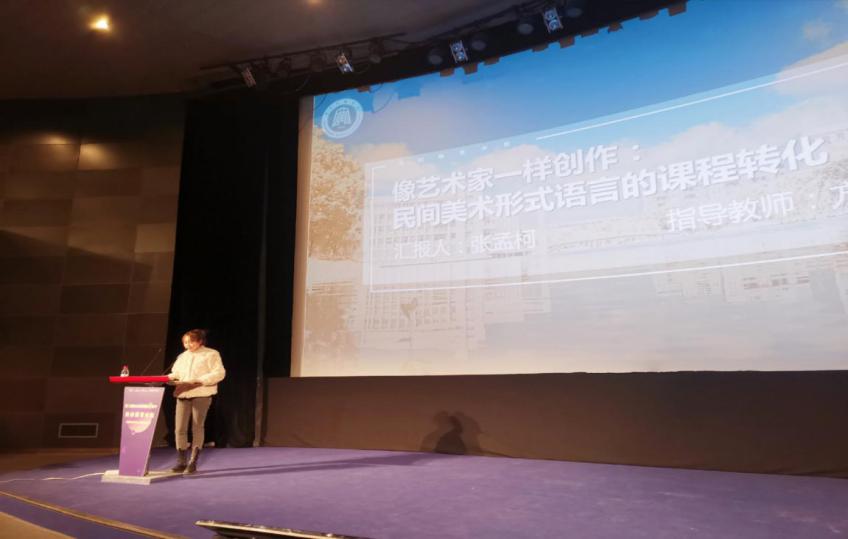 张孟柯汇报议题为《像艺术家一样创作:民间美术形式语言的课程转化》,围绕课程转化主题,以三个问题点进行展开,一是对民间美术形式语言的提炼,总结出形式语言的基本概念;二是从艺术创作到课程转化的思路梳理,分析艺术家转化的路径经验;三是课程转化的具体路径。