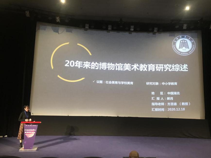 郝月汇报的议题是《20年来的博物馆美术教育研究综述》,围绕关于博物馆美术教育的政策条例、学术成果、美术教育实践三个方面展开,向在场的学者分享了21世纪的前20年中博物馆美术教育的发展现状,为今后博物馆美术教育研究者提供可参考的现实依据。