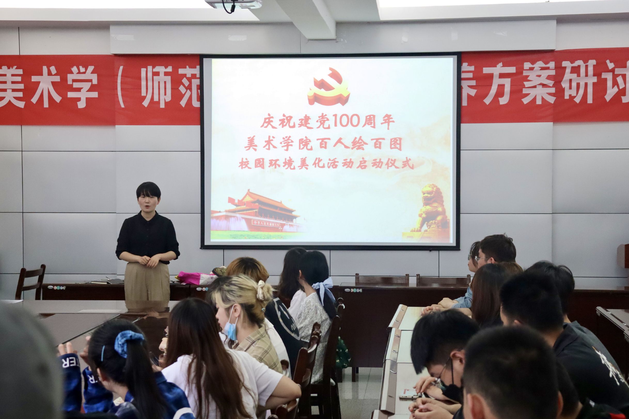 陶书记介绍了活动的背景、形式和意义,本次活动通过百余名同学绘画二百余个井盖的形式,美化校园环境,营造浓厚的校园文化氛围,向建党100周年献礼。周老师具体讲解了任务的分配、操作步骤和需要注意的事项等,并对绘画的内容和过程提出要求。
