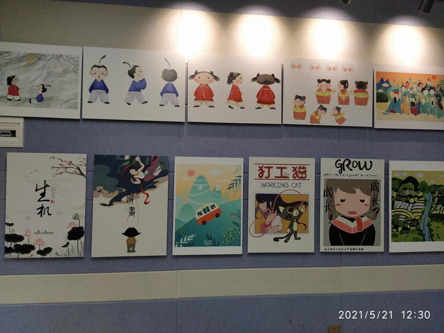 本次作品展从5月21日到6月3日共持续二周,展出美术学、视觉传达设计、环境设计、动画四个专业443名毕业生计301(组)件作品,其中佳作奖18件,优秀奖108件。