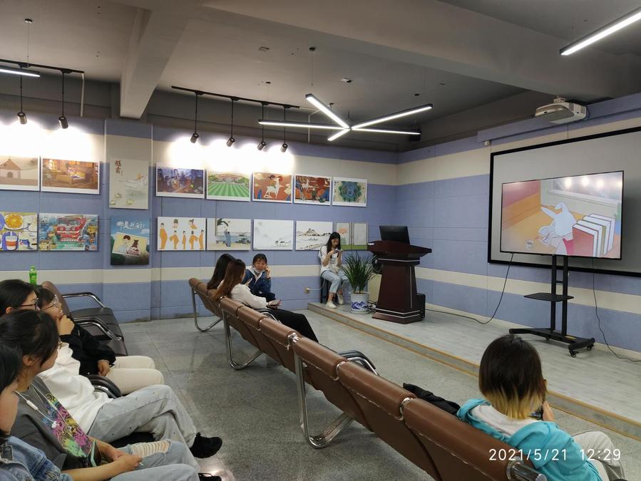 毕业员工代表付海兰和陈雨佳汇报毕业生创作收获,表达自己将不辜负学校的期望,一往无前地努力学习,回报学校。