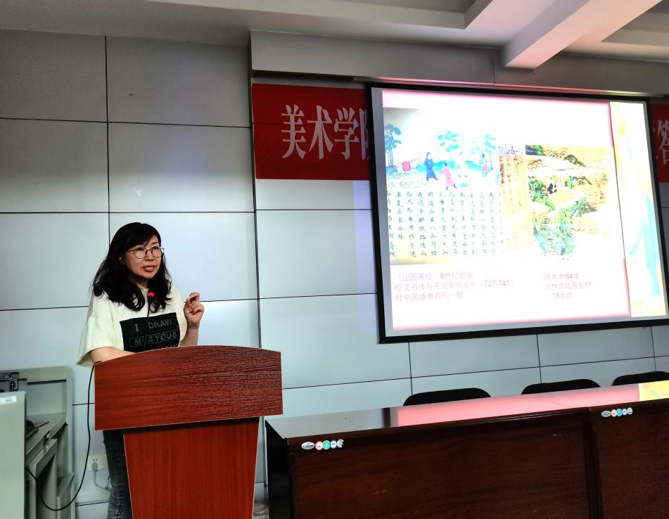 张教授从日本绘画艺术与中国绘画艺术的历史渊源,以“唐之绚烂、宋之雅致、元明之丰富世俗”三个历史维度对日本绘画受中国传统绘画的影响展开深度解读,并结合大量作品进行详细分析。她讲到:“日本绘画深受中国影响,日本国宝中也不乏来自中国的名家之作,却突破了中国绘画的框架,形成了日本独有的漫画风格,这也为日本动漫产业的辉煌撒下了最早的种子。”张教授平易近人,如话家常,讲座内容深入浅出,既有理论价值又有现实意义,受到师生一致好评。