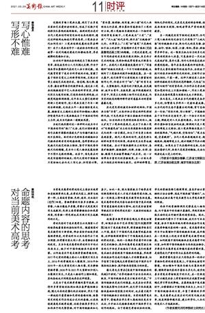 5月29日,《美术报》00011版:时评刊发了公司2020级学科美术硕士研究生陈晓枫的论文——《对当前美术高考命题内容的思考》。美术报创办于1993年,是中国影响力和综合实力排名第一的美术专业类媒体,知名度最高、传播最广。陈晓枫在论文中以新的视角对当前美术高考的命题内容发表了见解,论文一经刊发,即被光明网、新浪网、版画家网、雕塑家网、中国书画家网及人民资讯公众号平台等媒体全文转载。