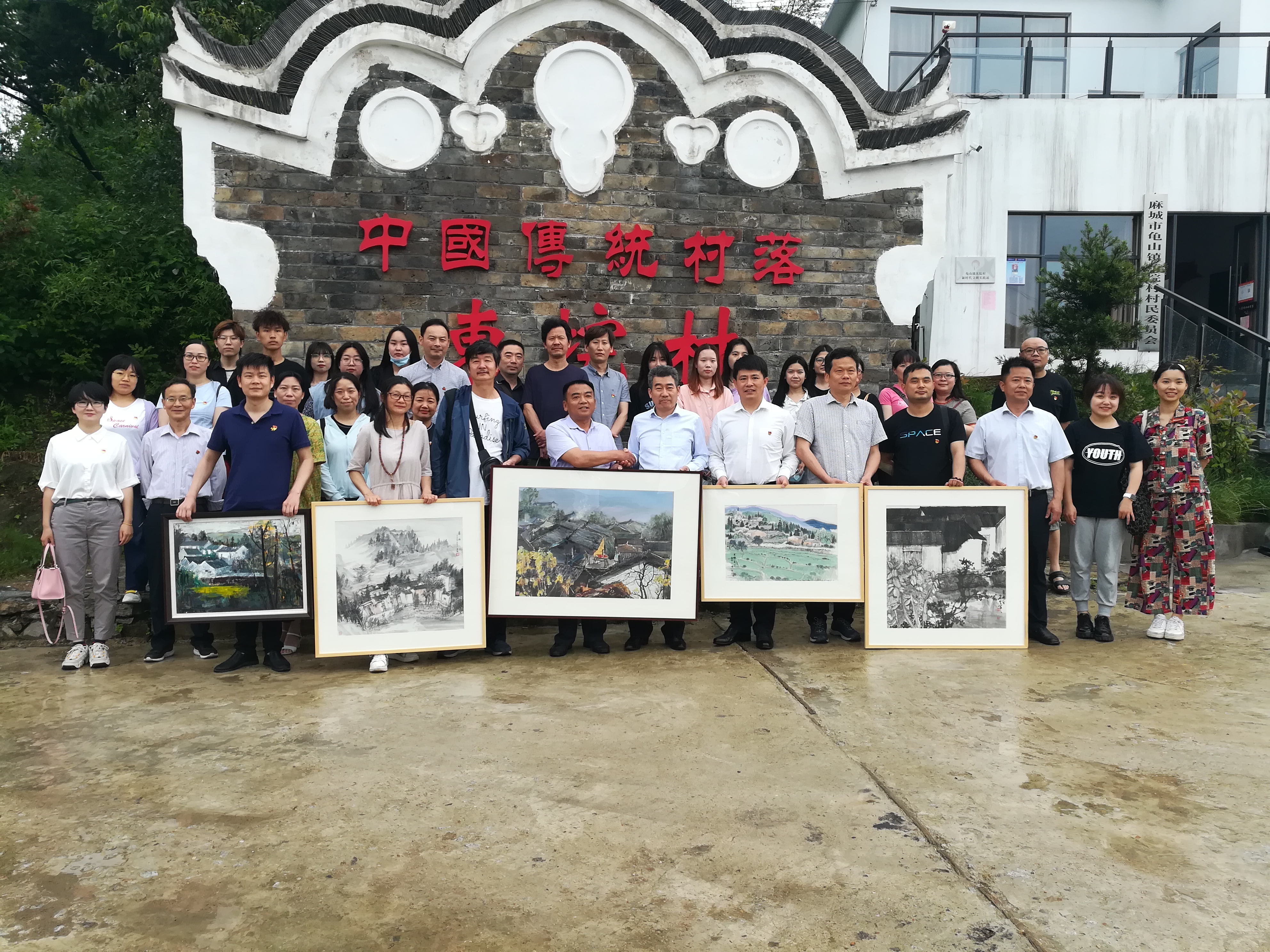 仪式上,马志斌董事长代表学校向东垸村捐赠绘画作品,东垸村党支部书记袁功富代表东垸村接受捐赠,并对此次无偿捐赠画作表示衷心的感谢。此次捐赠的5件作品由公司党员教师冯松涛、黎际文、柯希仑、方艳、王雷创作完成,作品均以东垸村风景为主题,展现了大别山传统村落丰富的民俗文化与自然资源。