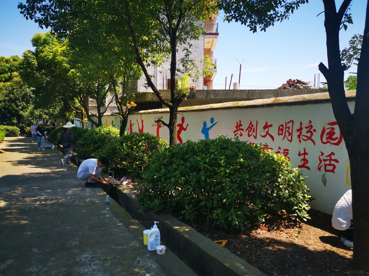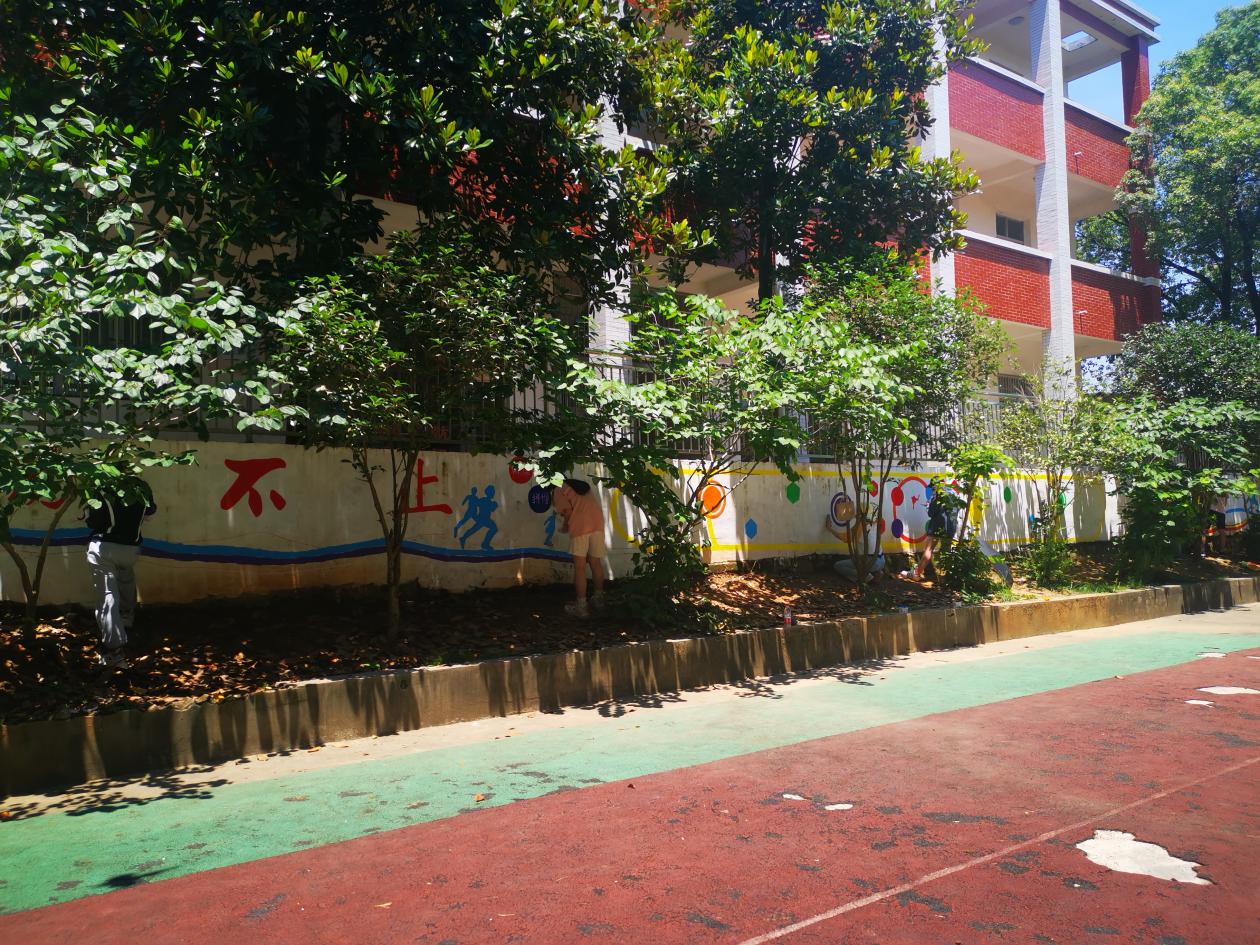 为践行党员为人民服务的宗旨,助力乡村小学美丽校园建设,6月23日,公海贵宾会员检测中心师生前往武穴市田镇钱炉村小学开展墙绘志愿服务活动。