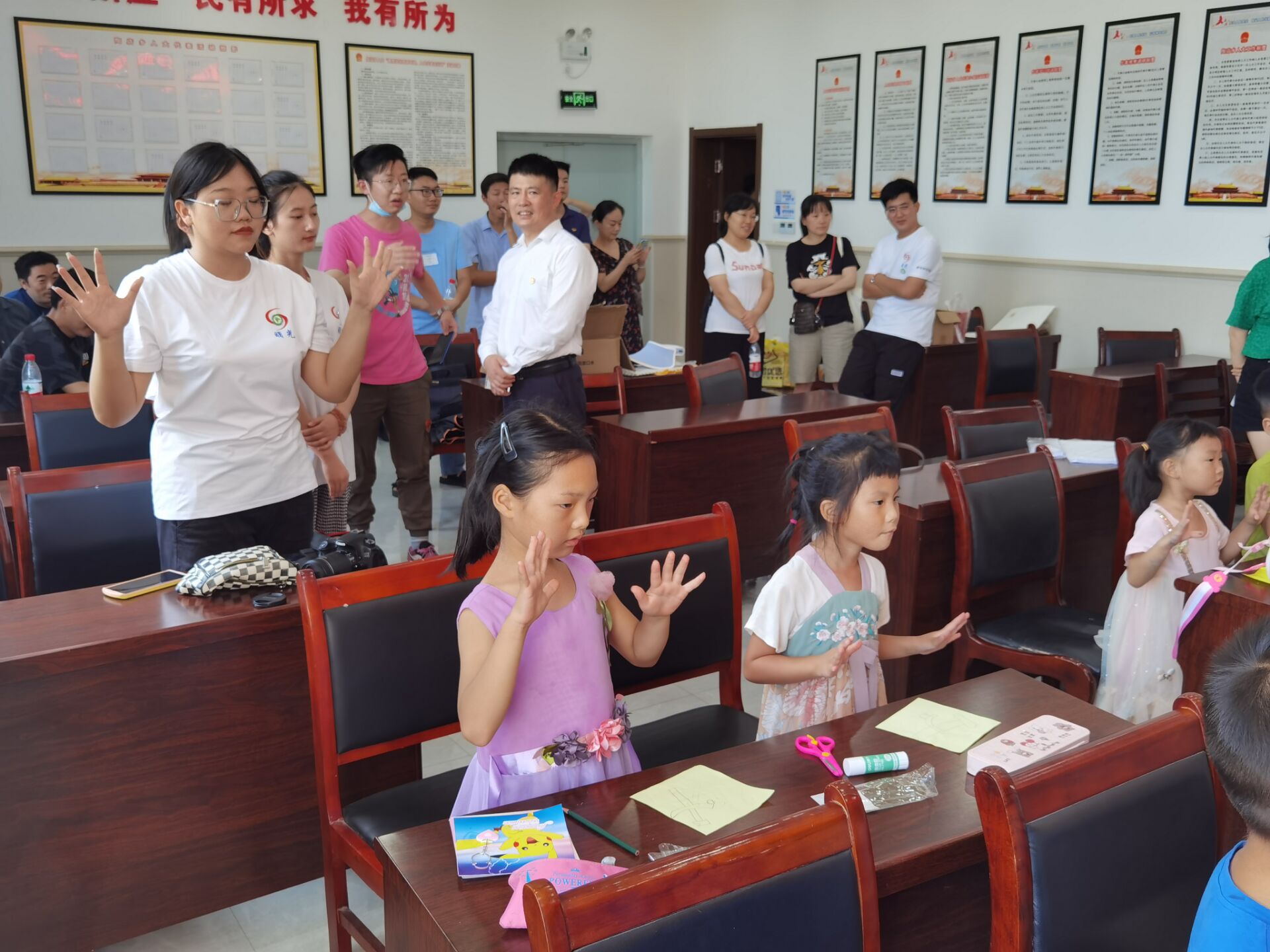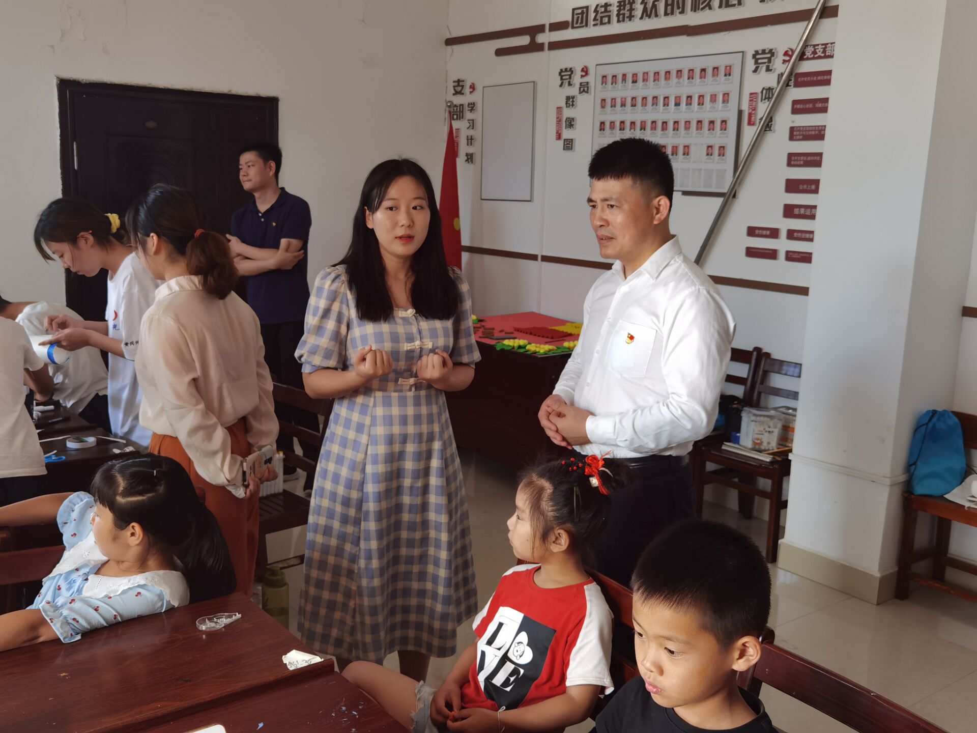 在道仁湖村委会,有些老师还亲自动手,利用专业知识对正在制作手工艺品的小朋友们进行了指导,充分体现了公司党员教师“不忘初心、牢记使命”的坚定信念。