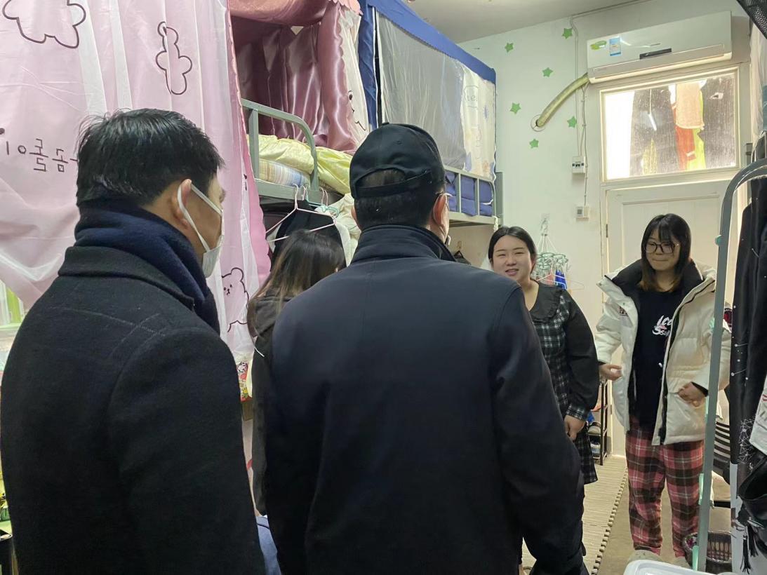 夏庆利副董事长先后走访了柳园九、十两栋寝室楼,亲切询问了公司员工在校的生活、学习情况,重点了解了当前线上课堂的学习开展情况,了解同学们能否适应现阶段的网课教学,网络教学的教学质量是否和线下教学一样,以及同学们对网络教学的意见和建议。