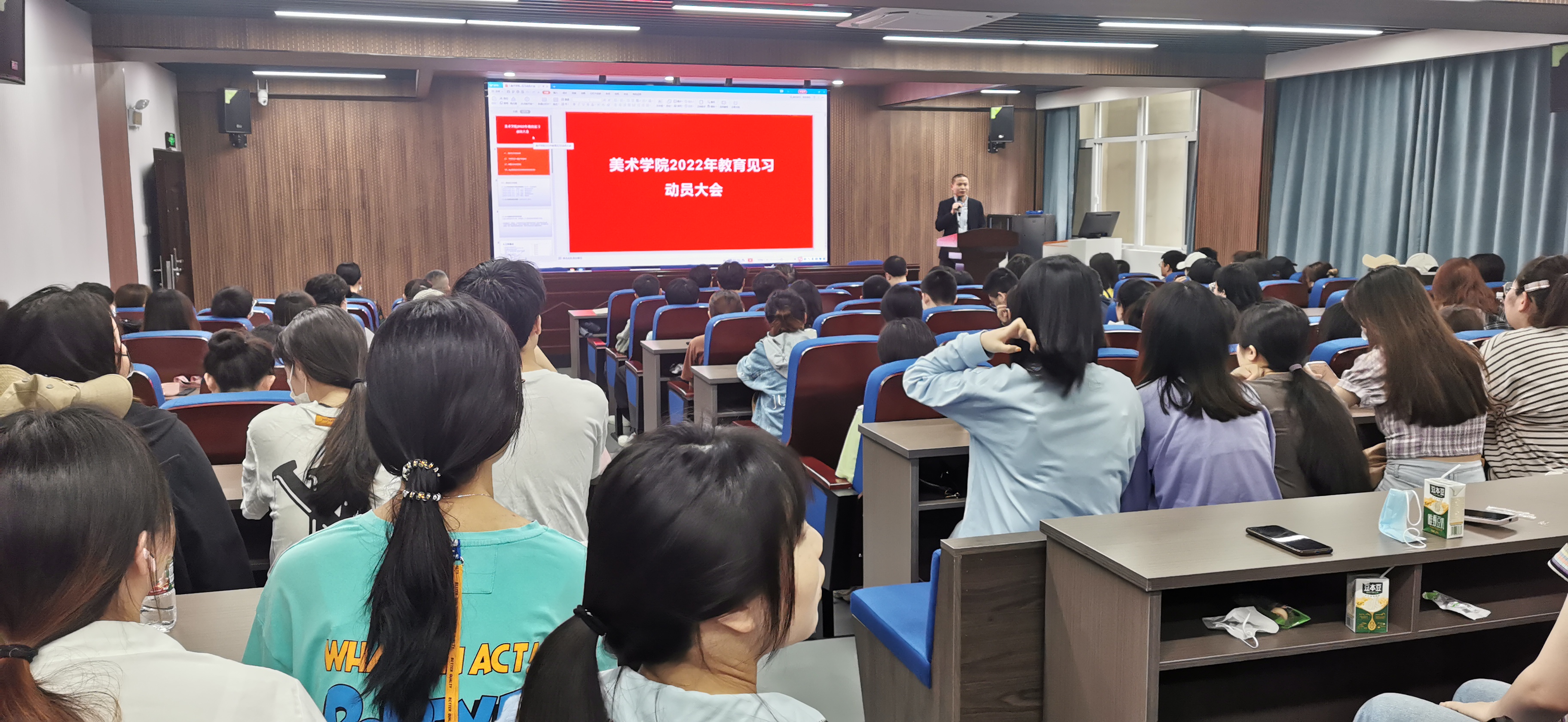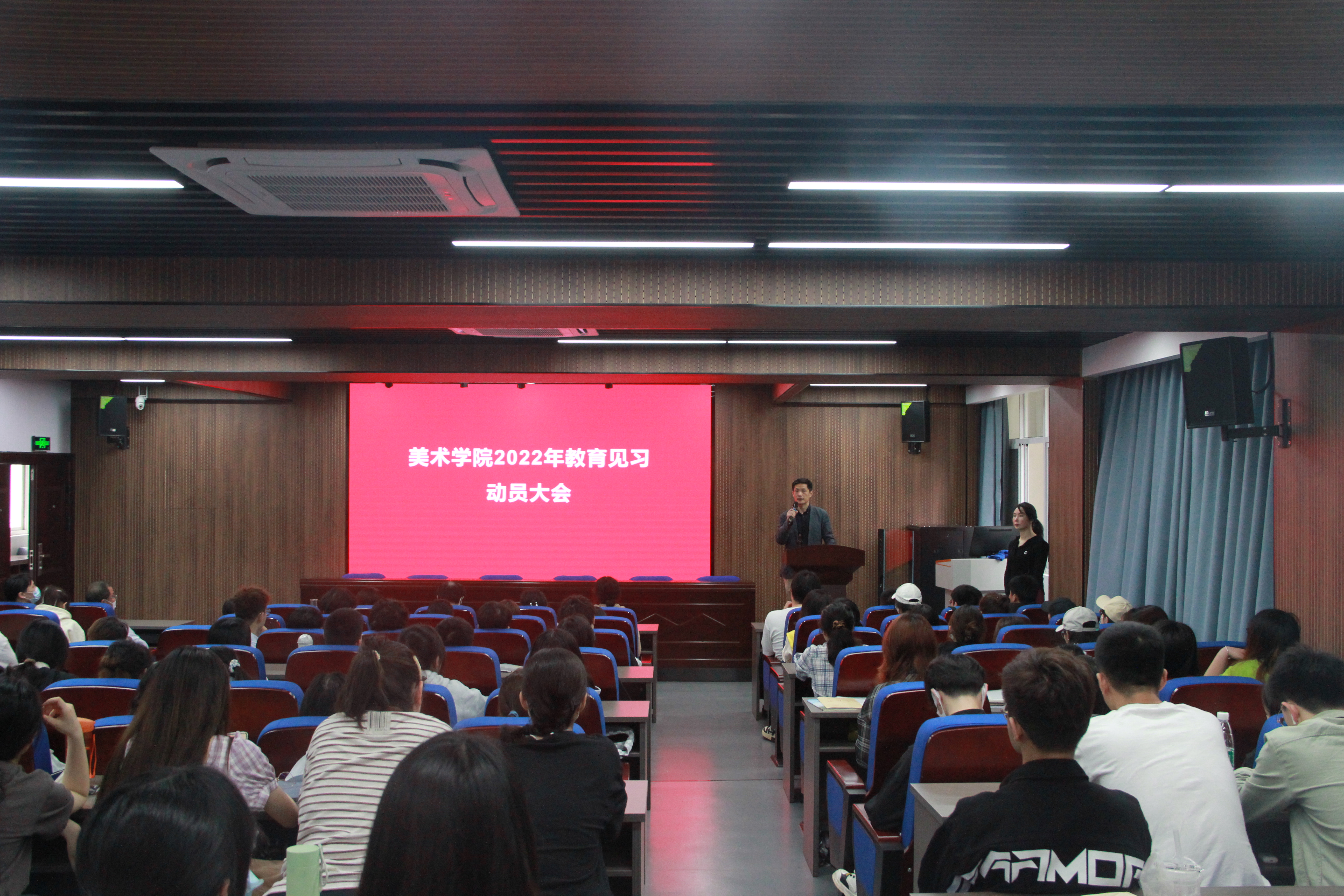 2022年4月25日上午,在公海贵宾会员检测中心二楼报告厅,美术学系组织召开2022年教育见习动员大会,公海贵宾会员检测中心副经理袁朝辉、美术学系2019级全体员工、全体见习指导教师以及教学办秘书参加了会议。