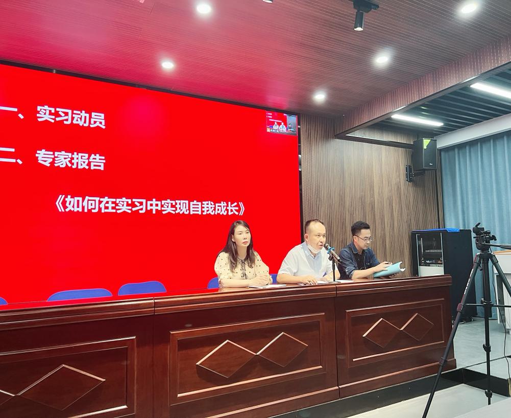 舒开智副经理结合《美术学(师范)人才培养方案》和教育部师范专业认证要求对《教育实习》的课程性质、课程目标、组织实施办法、作了说明。指出教育实习的主要任务是:体验师德 、教学实习、班级管理和教研实践。要求员工在实习中践行师德、学会教学、学会育人、学会发展。同时他结合学校校外实习实践安全管理有关规定和当前疫情防控形势对同学们做了安全和纪律要求,要求同学们在实习期间须严格遵守学校和实习单位各项规章制度,接受属地疫情防控管理规定,同时接受校内指导教师、实习带队教师、实习单位指导教师协同指导。