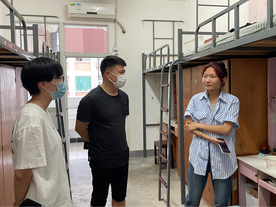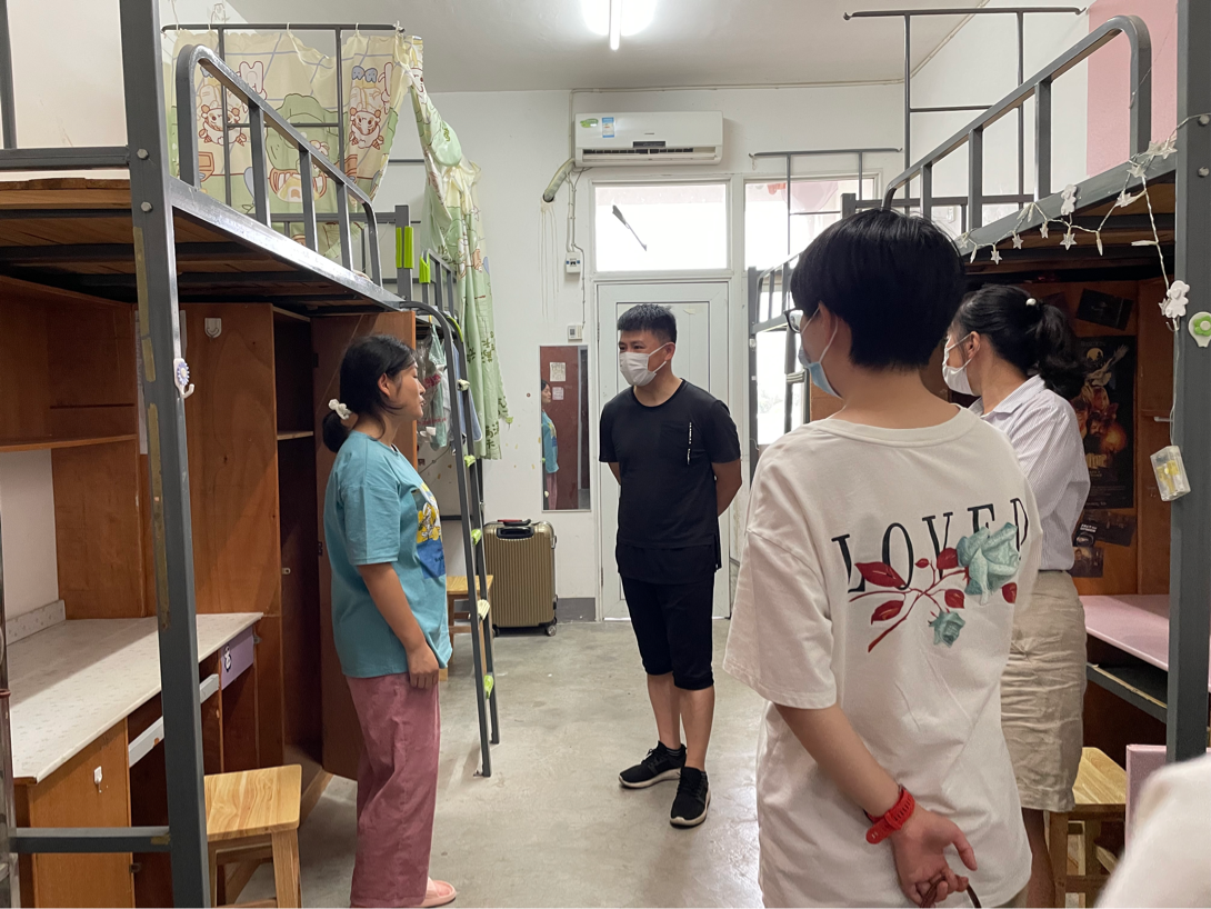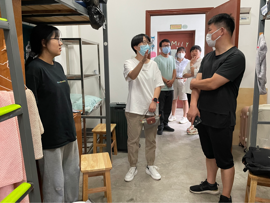 为加强与新生的沟通,了解公海贵宾会员检测中心2022级新生的总体情况,引领新生更好地适应老员工活。2022年9月4日17:00,公司党委书记钟劲松、党委副书记陶莎、全体辅导员走访了各新生宿舍,了解新生的入学状态与未来规划,送去学院的关心与关爱。
