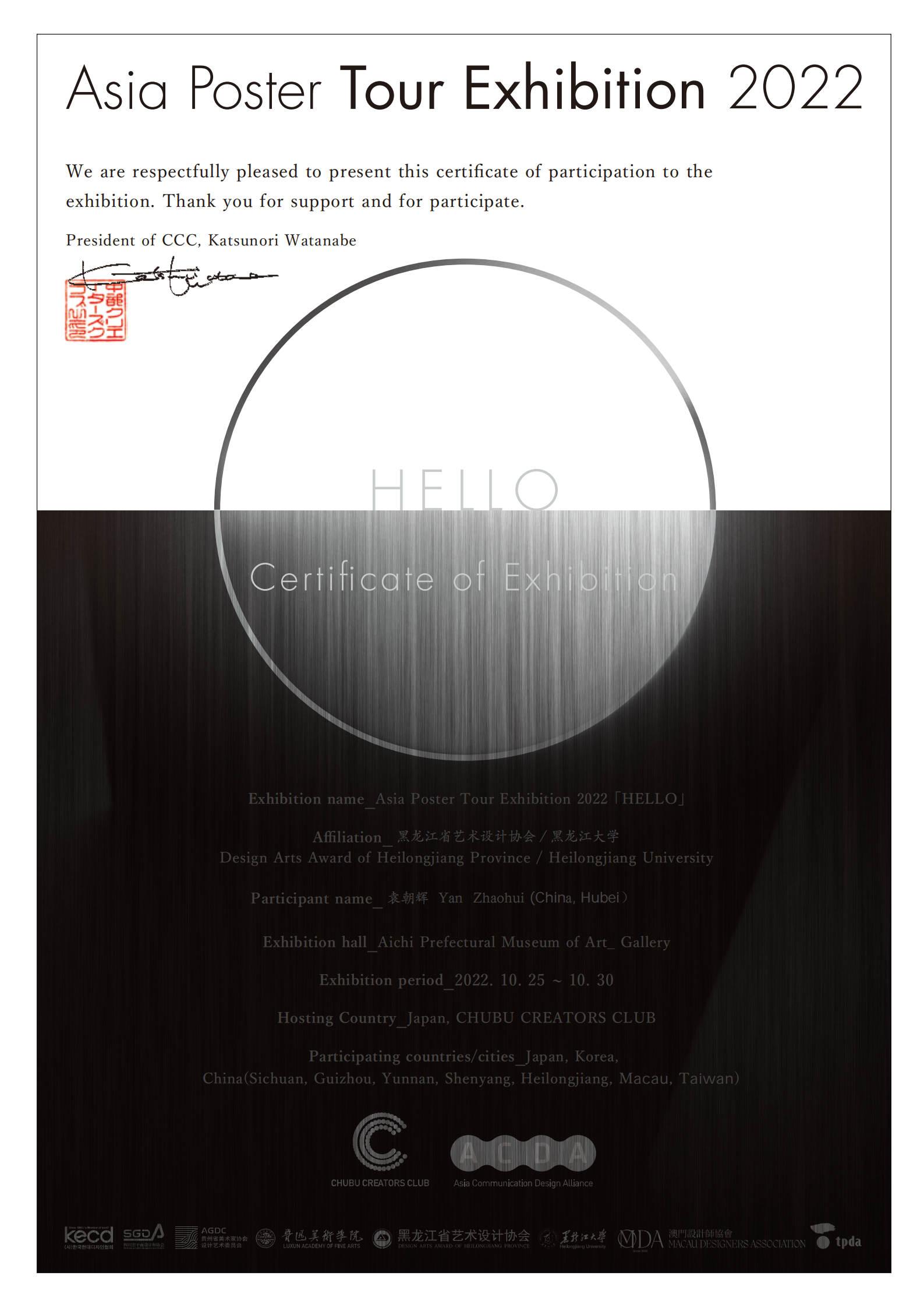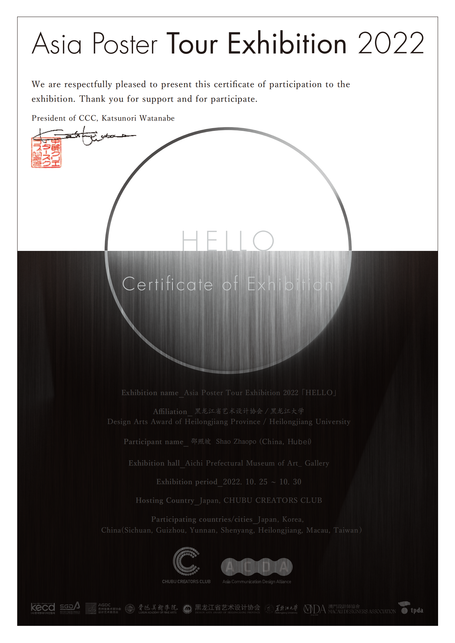 据悉,亚洲海报巡回展是亚洲著名海报专项展览。本届海报展以“HELLO”为主题,共收到了来自中国、日本、韩国等16个国家(地区)的高校学者、优秀设计师设计的海报作品,经国际评审团评议,最终300件作品入选。