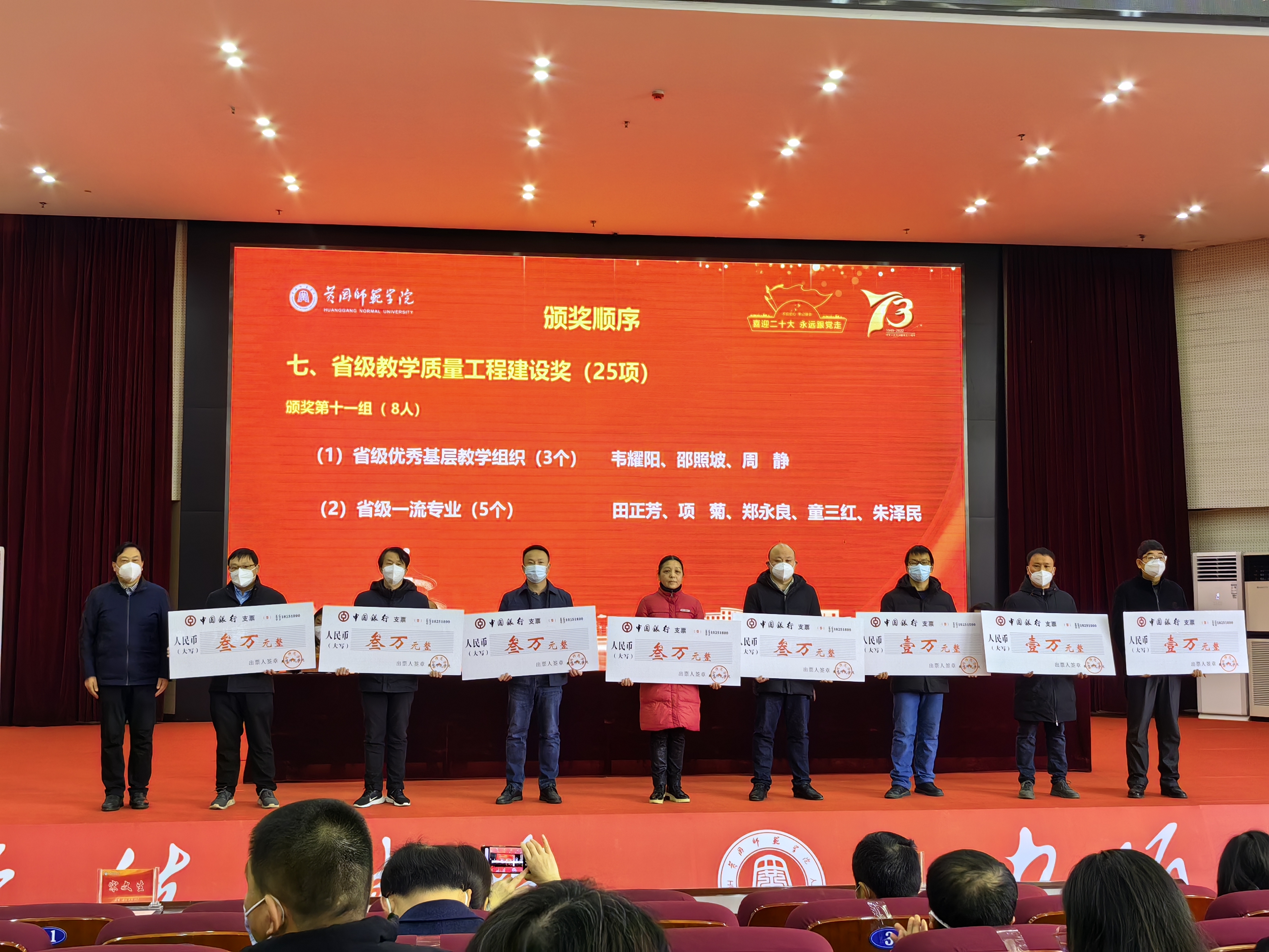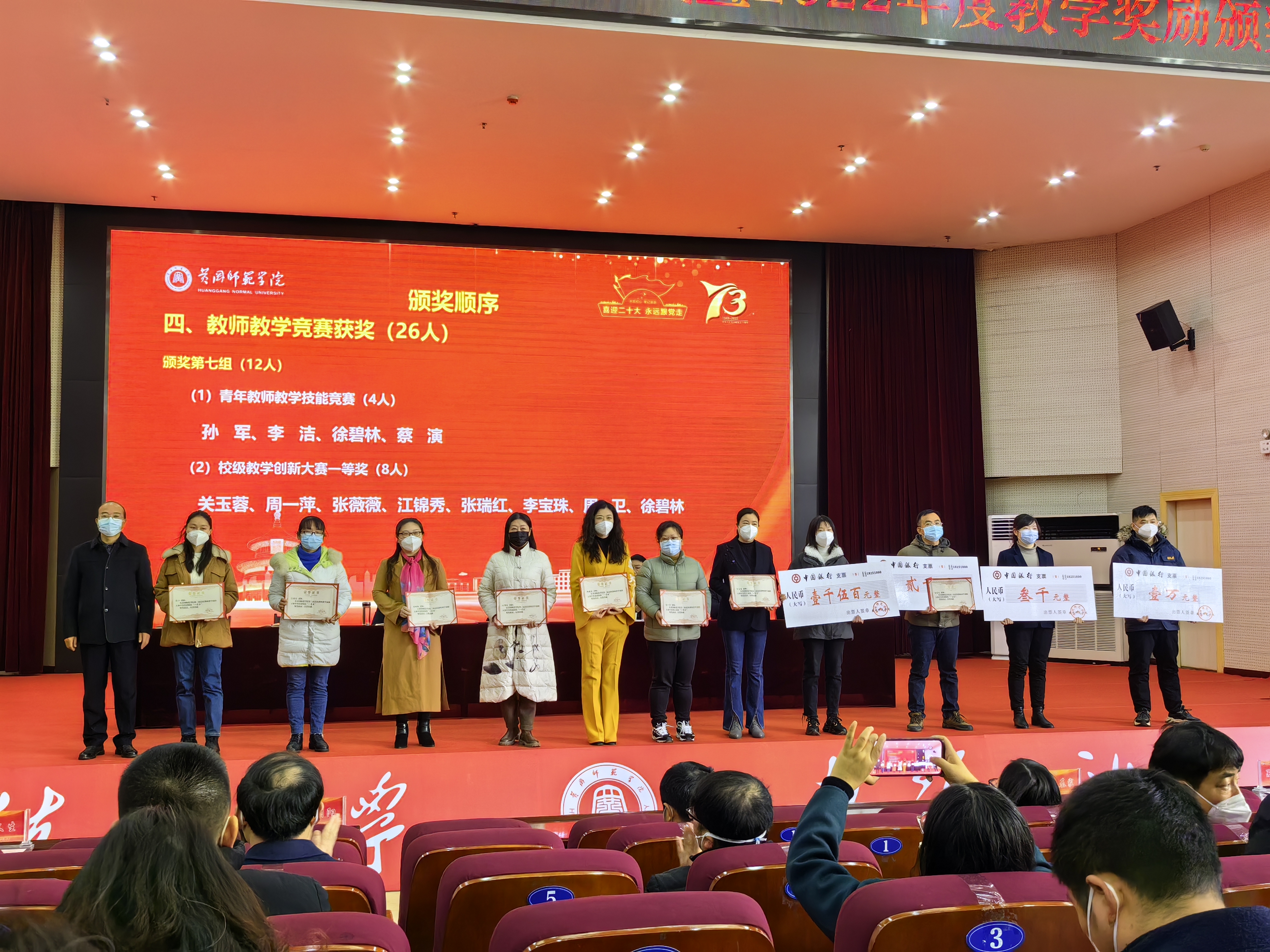 会上,校领导宣读了A类学科竞赛优秀指导教师、教师教学竞赛、教学优秀奖、校级优质示范课、基层教学组织示范活动、省级教学质量工程、教育部师范认证等获奖名单,并为获奖单位和个人颁奖。