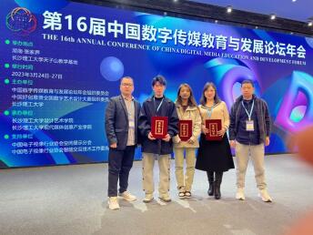 25日,第16届中国数字传媒教育与发展论坛年会暨第16届中国好创意大赛国赛颁奖典礼在长沙理工大学天子山教学基地举行,公司经理助理陈方教授、环境设计系主任甄新生副教授、视觉传达设计系副主任袁勋副教授、视觉传达设计系202001班殷佳宇同学、202002班李晓艳同学受邀参加了颁奖典礼。袁勋老师作为国赛优秀指导教师与殷佳宇、李晓艳两位国赛二等奖获得者上台领奖。