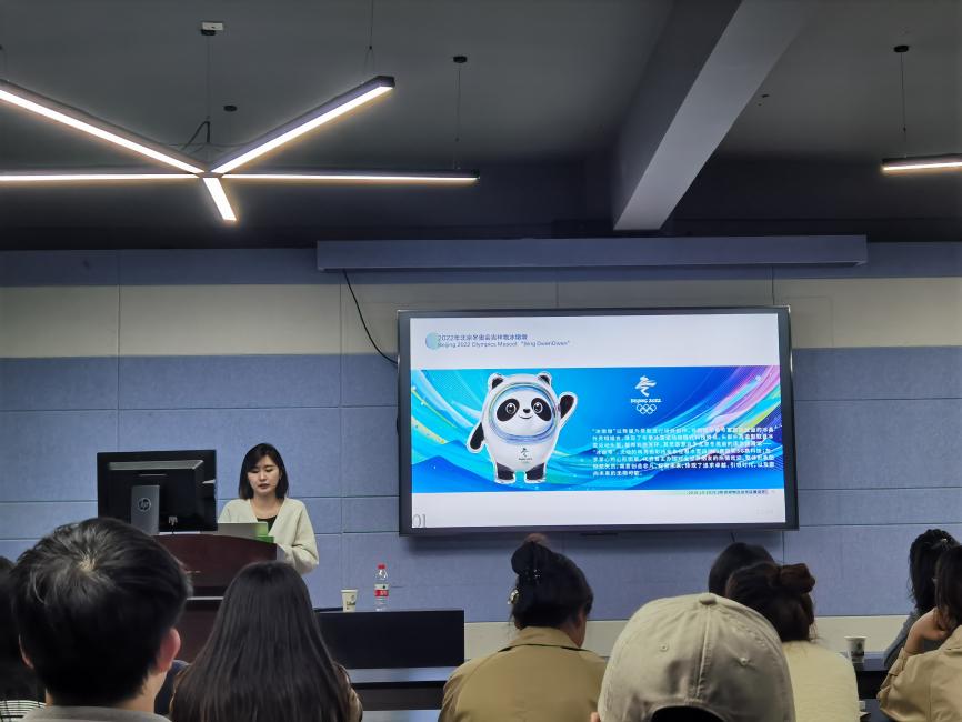 随后,邢晓虹老师分享了“冰墩墩”的设计历程,首先是进行奥组委组织的宣讲,直到团队入围进行初稿的征集修改,从最初的糖葫芦形象进行二维化、三维化等各方面的步步修改,最后见证冰墩墩的诞生。就“冰墩墩”的设计过程总结了传统和现代吉祥物的表达,都是对国家形象的传递。