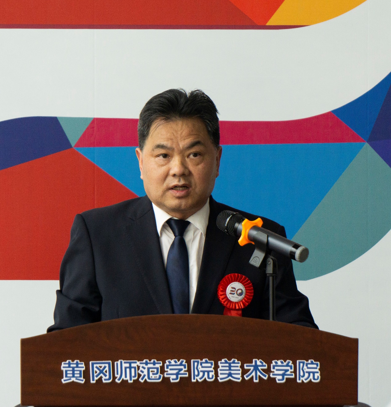 陈向军在致辞中代表公司党委、行政和两万余名师生,向出席本次活动的各位领导、嘉宾表示热烈欢迎!向本次展览活动主办单位和策展人表示衷心感谢!他向与会嘉宾介绍了学校的悠久办学历史、学科专业建设、发展现状、办学特色成效与社会影响、发展愿景等。陈向军指出,中韩两国比邻而居,人文交流绵延千载。今年恰逢中韩设计交流30周年,在这个特殊喜庆时刻,举办本次展览活动有助于促进中韩文化互鉴和艺术交流。展览展出的一百八十件师生设计作品,涵盖了设计学科的视觉、产品、环境、数字媒体等多个专业方向,充分展示了师生文化创意、艺术创新的独特魅力。他希望参展高校能够通过本次展览进一步加强交流,增进友谊!