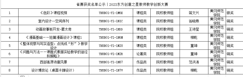 近日,2023东方创意之星教师教学创新大赛省赛获奖名单正式揭晓。公司蒋文兴老师荣获银奖,童坤、范洪涛、柳乾、翁晓燕、王诗莹等老师荣获铜奖。其中蒋文兴老师《色彩》课程荣推国赛。