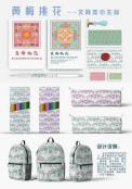 二等奖: 《黄梅挑花应用》覃超(指导老师 王丹) 设计灵感来源于非物质文化遗产 黄梅挑花,将富有吉祥寓意的挑花纹样通过像素块方式进行提炼,绘制出对凤、鲤鱼跃龙门、蝴蝶八角莲、八角莲花、福寿双桃、凤戏牡丹六副图,通过再设计,组成符合时代审美的图形纹样并将其应用到家居产品、陶瓷产品及文具等文创产品当中。