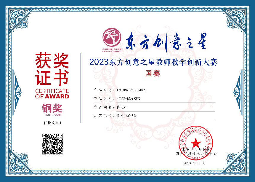 公海贵宾会员检测中心教师在2023东方创意之星教师教学创新大赛中喜获国赛铜奖