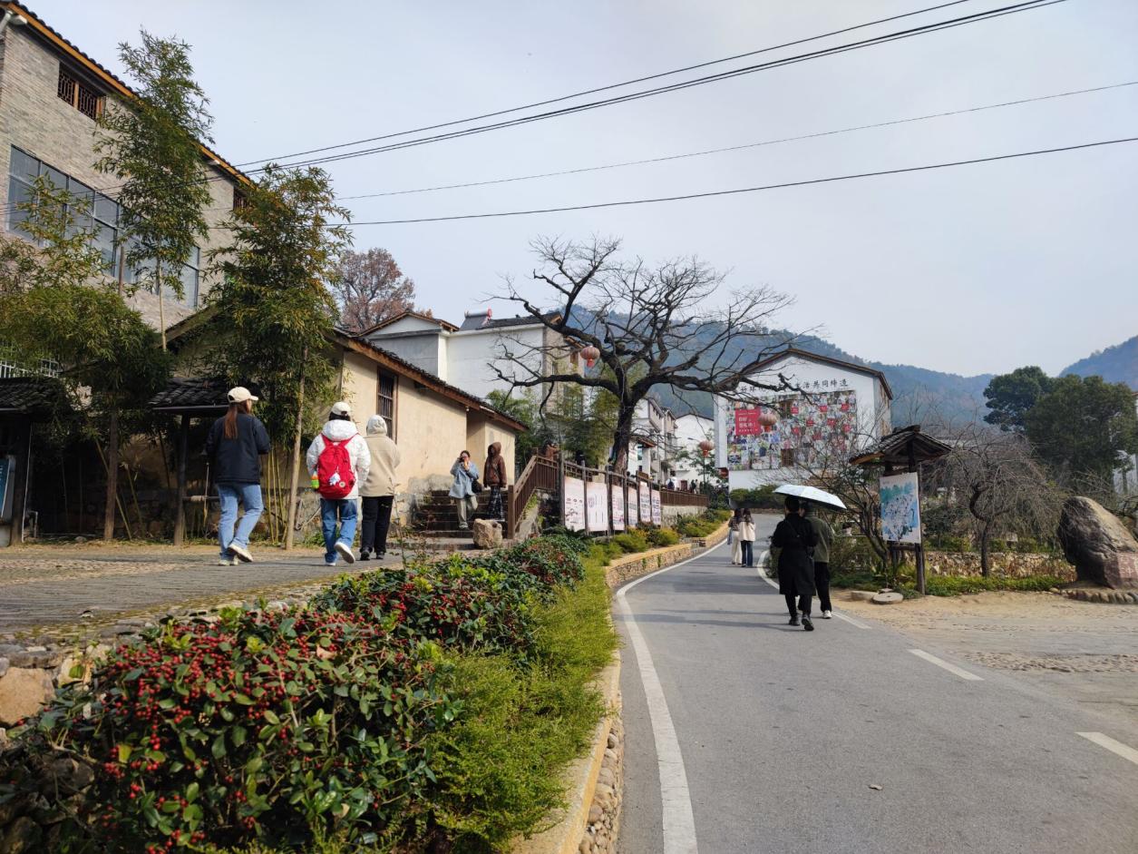 最后,师生团队又赶赴“中国甜柿第一村”——罗田县三里畈镇錾子石村调研,结合当地乡村建设与旅游开发工作,与在该地工作的我系毕业生刘思璐进行深入交流。錾子石村通过招引企业投资,完善基础设施、旅游业态等方式,将生态资源转化利用,推动“甜柿产业+农业旅游”深度融合,打造乡村振兴“美丽引擎”,实现了Rural Environmental Regeneration的建设模式实施。在完善道路、停车场等各项基础设施的基础上,建设观光旅游区、农业生态示范区、科普教育功能区,打造集休闲旅游、研学教育、现代农业和餐饮住宿等产业为一体的“柿里牧歌”田园综合体。