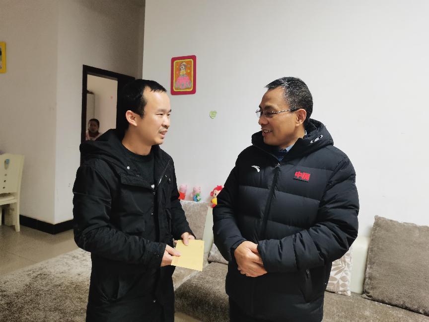 漆昌柱来到困难职工家中,为他送上慰问金并与其亲切交谈。漆董事长详细了解困难职工的工作和生活情况,听取他在工作上取得的成绩和存在的实际困难。漆董事长亲切勉励困难职工要坚定信心、保持乐观,兼顾好家庭、生活和工作,在学校的帮助下努力战胜眼前困难,争取取得更大的成就。漆昌柱要求随行的相关同志和相关部门要精准施策、创新方式,加大对困难职工的帮扶力度,切实解决他们工作生活中遇到的实际困难。