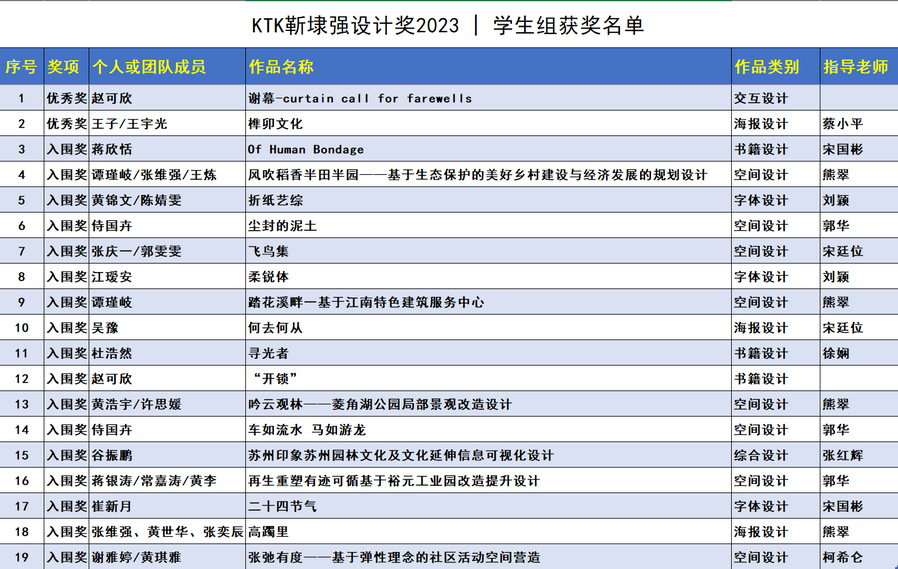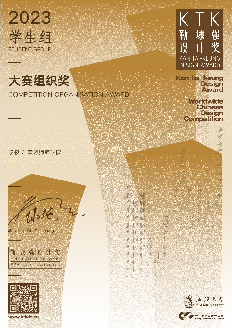 近日,《全国普通高校老员工竞赛分析报告》观察目录赛事“2023 KTK靳埭强设计奖·全球华人设计比赛”奖项公布,公司共获奖19项,其中优秀奖2项、入围奖17项。因赛事组织工作表现突出,学校荣获优秀组织奖。