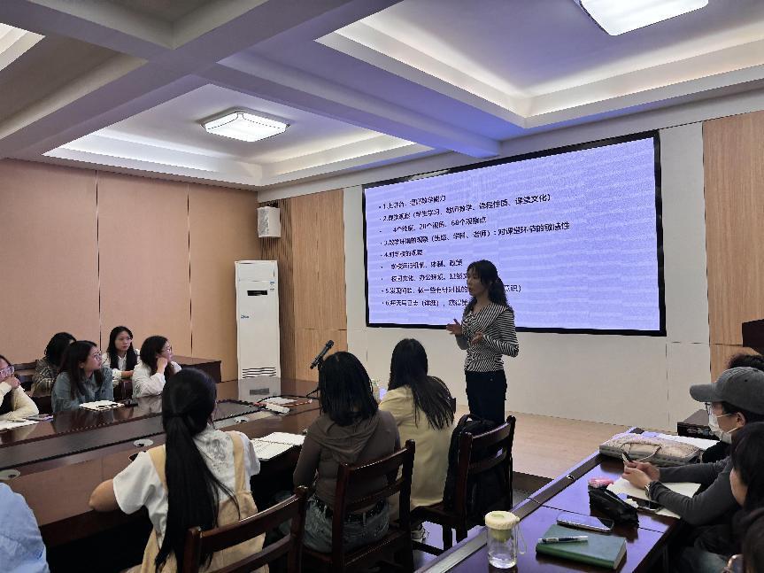 会议首先听取了2022级研究生关于实习工作的汇报。樊红梅老师针对前期实习工作出现的问题进行了具体的指导,鼓励研究生多上讲台,提高教学能力,同时要从多维度、多视角对学校、教学环境和课堂进行观察,积极撰写实习日志,为课题的研究获得第一手资料。