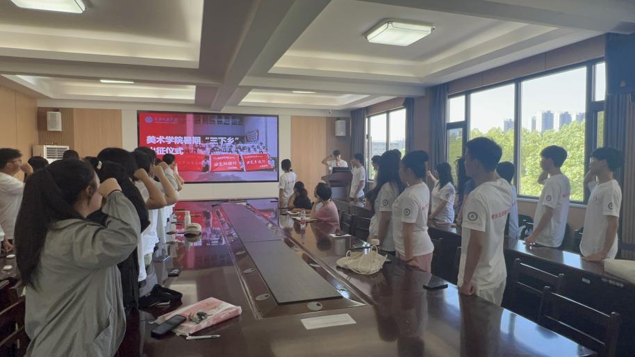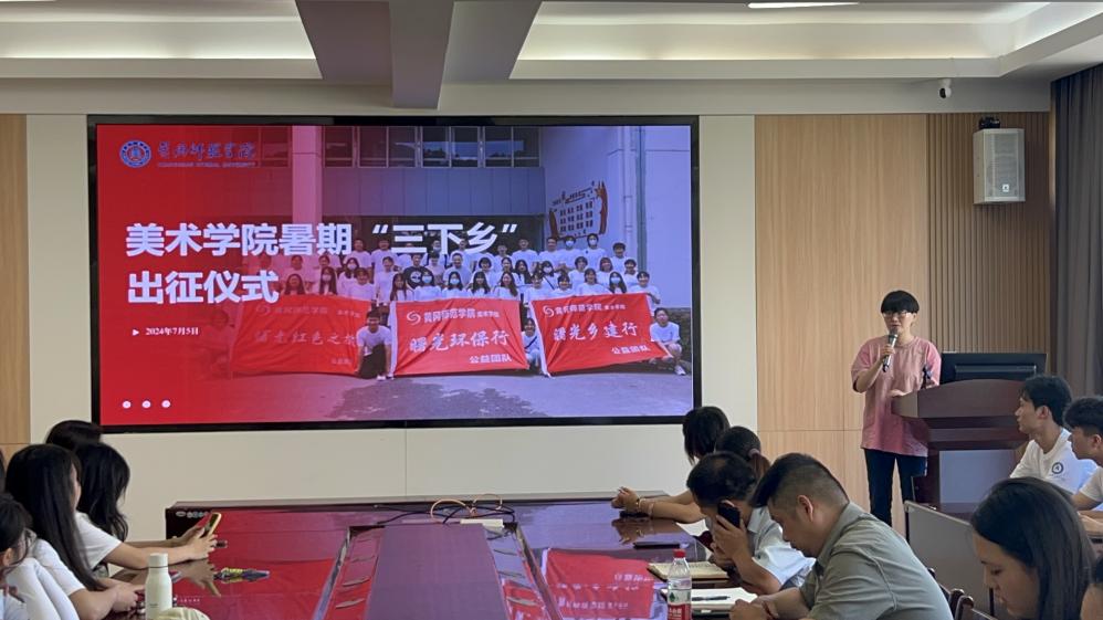 团队成员普淇同学代表志愿者们进行了发言,并带领大家一同宣誓,将以满腔热血和无私奉献的精神,积极投身于这次社会实践,用专业知识和艺术才能为乡村振兴贡献青春力量。