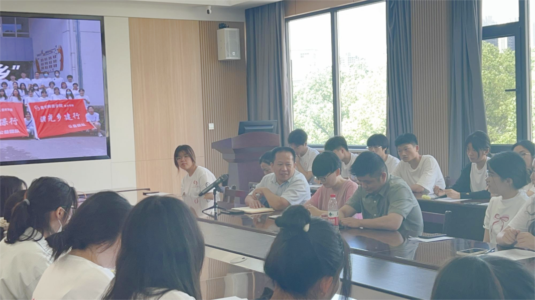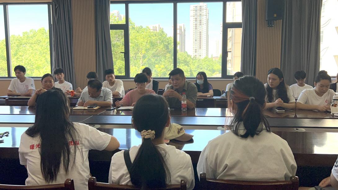 接着,指导老师们分别宣布了各分队开展活动的行动方案。在本次暑期社会实践中,“曙光”志愿服务团队将依托“曙光红色文化之旅”和“曙光乡建行”两支团队开展活动。红色文化之旅团队将前往武穴市大法寺镇、罗田县凤山镇、大崎镇等地开展为期一个月的“与家乡艺同成长”希望家园活动,并前往红安、麻城、大悟县等地开展“艺绘大别山,红脉永流传”调研实践活动,其目的是引导儿童在感知乡土美的过程中,有机融入知乡、爱乡、建乡、守乡教育,提高乡村美育质量,同时传承红色基因,凝聚红色美术文化精神;乡建行团队将前往团风县上巴河镇开展“寻红色足迹,扬家乡文化”社会实践活动,其目的是通过红色美育教学和乡村环境改造相结合,助力当地乡村的美丽蜕变,同时引导当地青少年做家乡文化传播者。两支团队在6月底全部完成了前期调研工作,与服务地完成了对接。