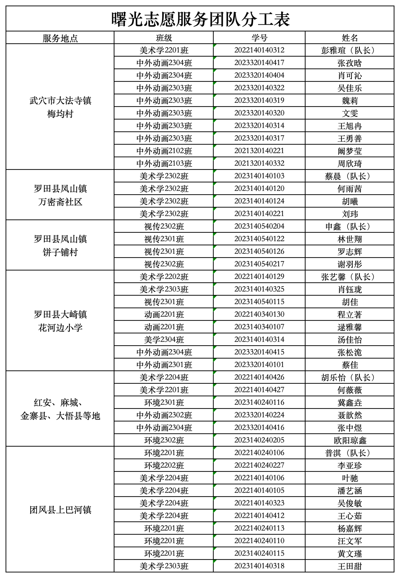 附此次团队人员分工表:
